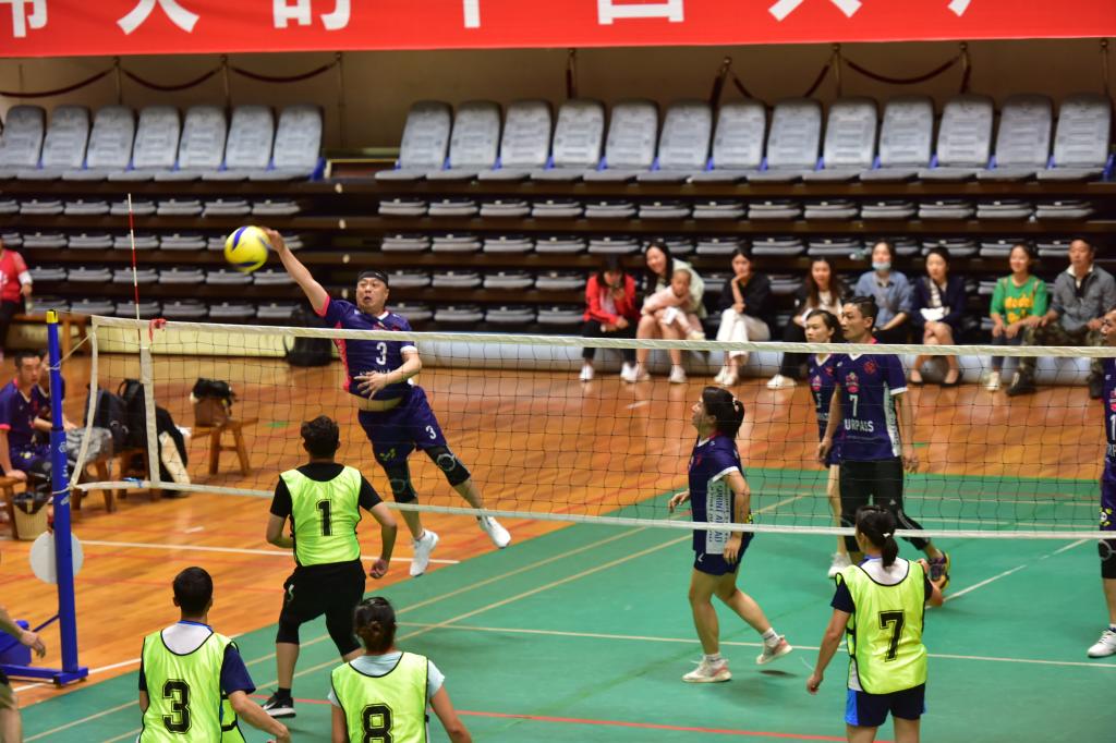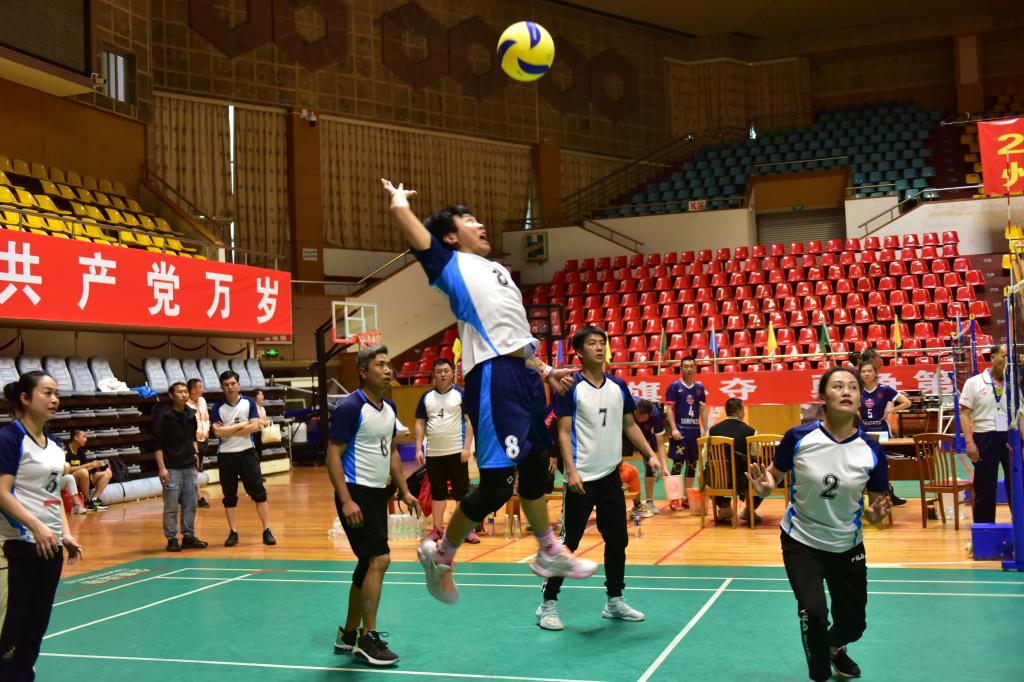 此次比賽為期兩天,第一階段進(jìn)行小組單循環(huán)賽,第一階段進(jìn)行交叉淘汰賽,總共進(jìn)行45場(chǎng)比賽,云錫的13家單位共104名運(yùn)動(dòng)員參加比賽,決出團(tuán)體前六名。為了提高氣排球比賽的激烈性、觀賞性和趣味性,此次比賽采用男女混合5人制氣排球比賽形式,每個(gè)團(tuán)體8名隊(duì)員(含3名替補(bǔ)隊(duì)員),每場(chǎng)比賽必須確保2名女隊(duì)員上場(chǎng)。