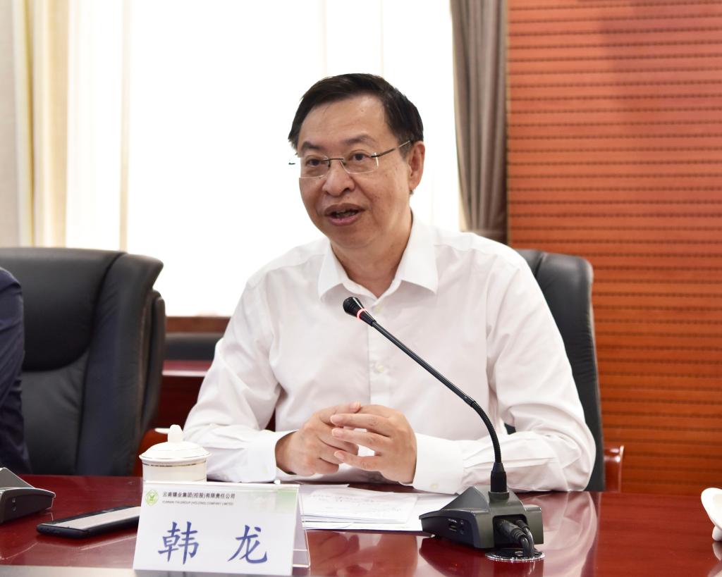 8月8日上午,礦冶科技集團黨委書記、董事長韓龍,黨委委員、副總經理馬彥卿一行到訪云錫,就雙方如何實現合作共贏、共同成長,與控股公司黨委書記、董事長胡均,黨委副書記、副董事長、總經理程睿涵,黨委常委、副總經理宋興誠座談交流。