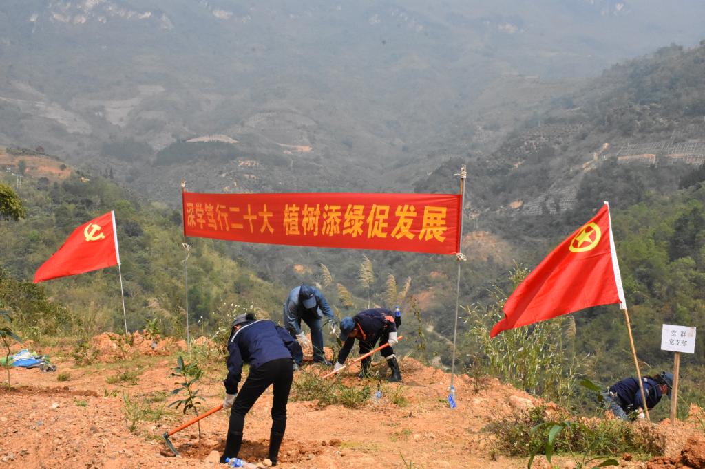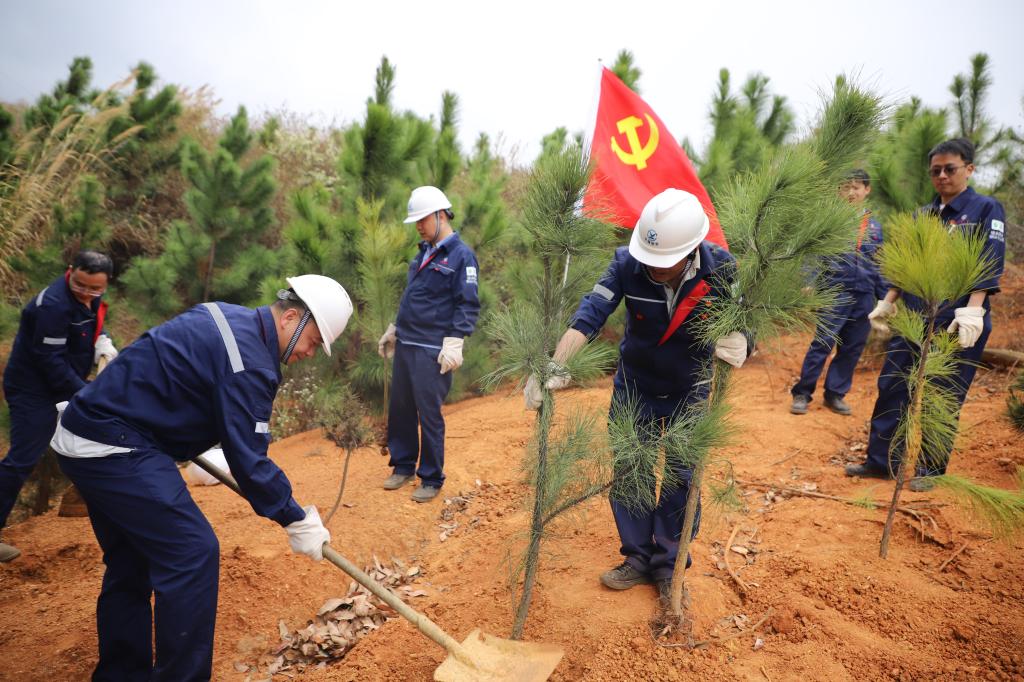 大屯錫礦開展“黨建帶團(tuán)建 播種共青林”植樹節(jié)主題活動(dòng),為共建綠色礦山、擦亮花園式工廠名片添新添綠,經(jīng)過4個(gè)小時(shí)的努力,共植60棵櫻花樹。(張紹強(qiáng) 王均鑫)