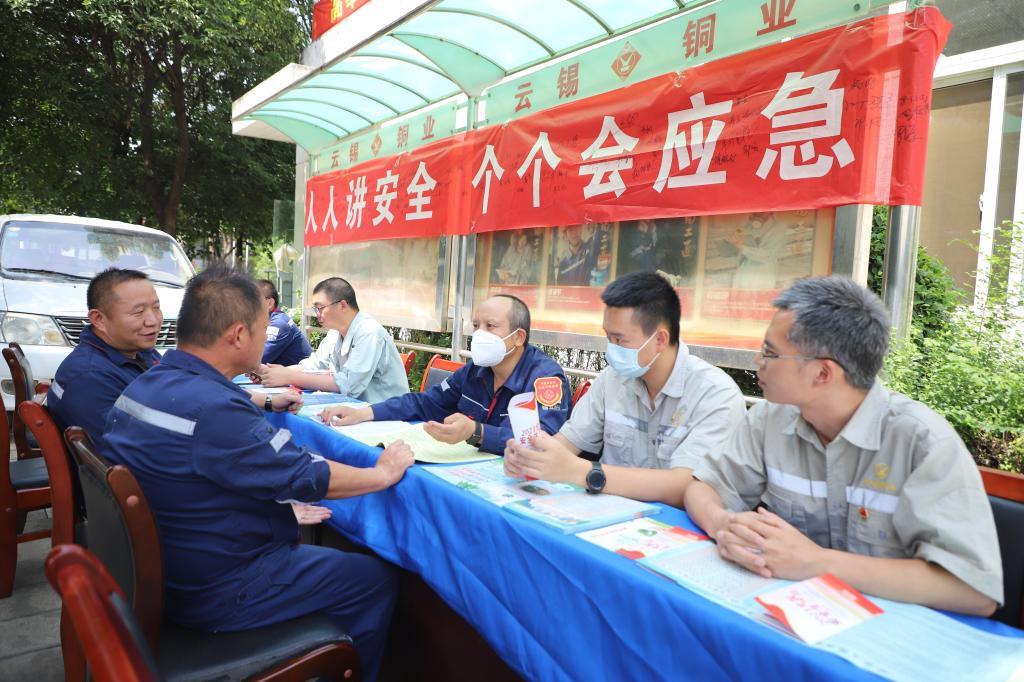 人人講安全,個個會應急。在第22個全國“安全生產月”,云錫各單位持續深入宣傳貫徹落實習近平總書記關于安全生產重要論述和黨的二十大精神,組織開展“安全宣傳咨詢日”活動。向職工群眾宣傳普及安全生產相關的法律法規及各類安全常識,通過面對面交流咨詢,為職工解疑答惑,回答職工群眾最關心的安全生產問題,切實提升職工群眾的安全意識,將安全貫穿生產全過程,壓緊壓實安全生產責任,營造了濃厚的學習氛圍。