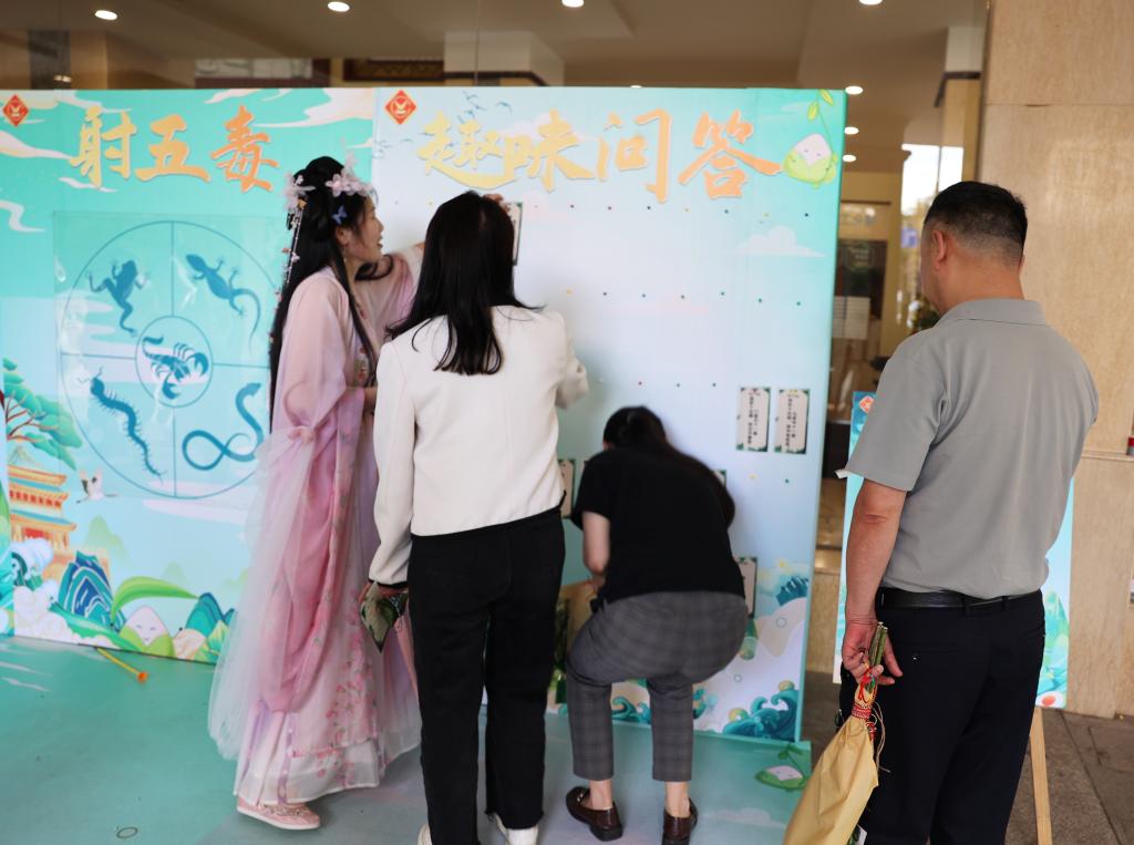 屈原投汨羅江前的絕筆之作是?“這個(gè)問題我知道,屈原投汨羅江前的絕筆之作是《懷沙》”活動現(xiàn)場,大家爭先恐后的舉手搶答,本次知識競賽的題目包含端午節(jié)風(fēng)俗習(xí)慣、節(jié)日相關(guān)的歇后語、屈原經(jīng)典名句等,現(xiàn)場氣氛熱烈,大家在歡聲笑語中學(xué)知識、展風(fēng)采。