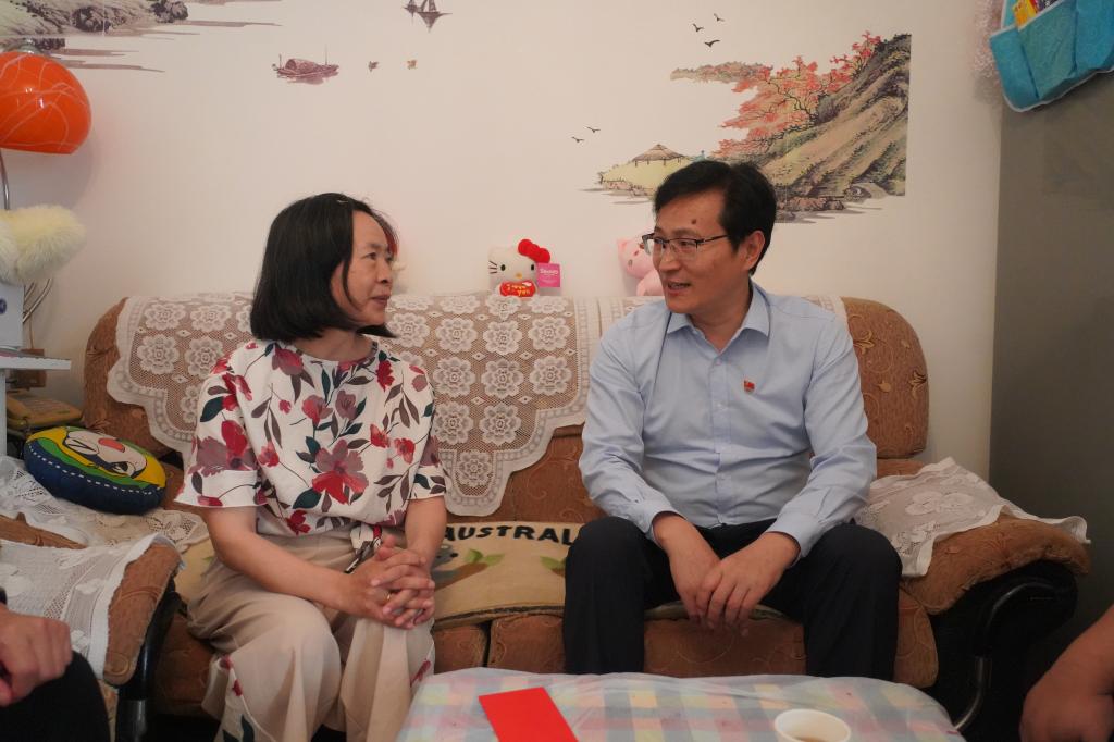 控股公司黨委副書記、副董事長、總經(jīng)理韓守禮走訪慰問錫都實(shí)業(yè)公司困難黨員陳美華(孫載通/攝)