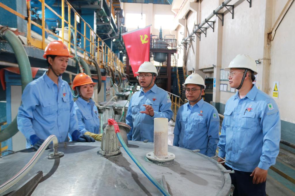 理論學習扎穩根、鑄牢創新發展“匠心魂”。堅持黨建引領、創新驅動,將學習貫徹習近平新時代中國特色社會主義思想作為首要政治任務,聚焦運用新時代黨的創新理論研究新情況、解決新問題,以理論學習為立足點、以專業學習為創新點,強化“三會一課”、主題黨日活動落實,創新“點單+配菜”“名匠+名課”“理論+實操”新模式,在深學細悟中抓“導學”、在吃透弄懂中抓“研學”、在輻射帶動中抓“聯學”,以學帶動車間創新發展體構建,以學筑牢職工“精于工、匠于心,品于行、創于新”的匠心之魂,聚焦無機錫產業“卡脖子”領域,生產工藝薄弱點,直擊“痛點”、疏通“堵點”,推動制度創新、工藝革新、設備更新,以創新思維選用新設備,對硫酸亞錫、氣化二氧化錫、錫酸鈉進行工藝改造,產能分別提升10%、50%、22%,打好產能提升“硬底子”;以創新理論最新成果引領成果轉化,實現近五年申報科研項目22項,成果轉化15項,獲得科技進步獎2項;職工申報專利7項、授權3項,發表論文9篇。
