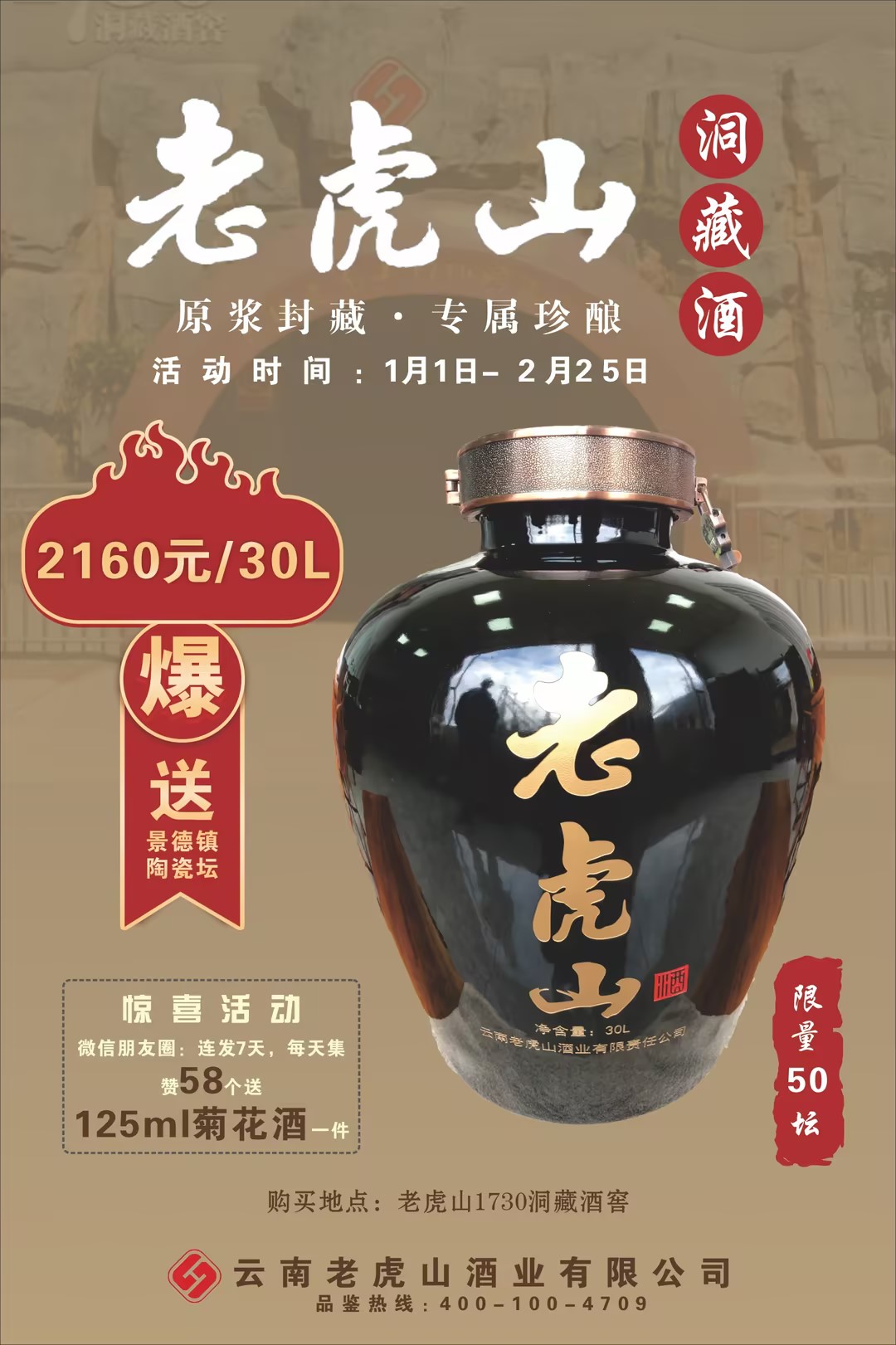值此新春佳節(jié)即將到來(lái)之際,老虎山酒業(yè)為回饋新老顧客,特推出老虎山系列酒品優(yōu)惠活動(dòng)!口感醇厚,回味悠長(zhǎng),買即享折扣,更有好禮相送!