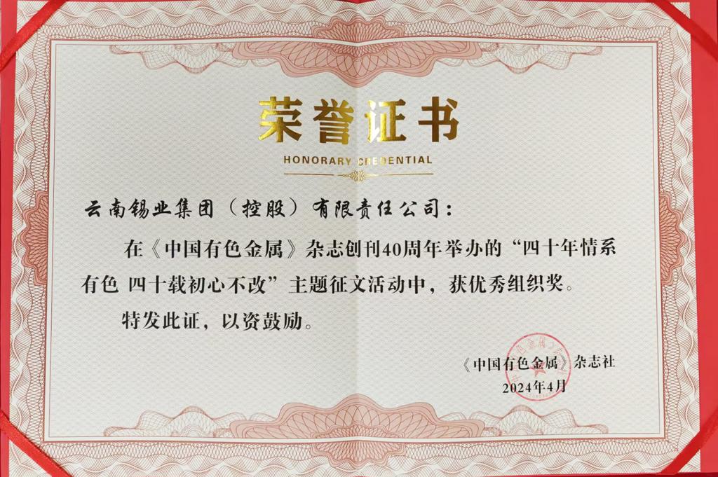 此次榮譽(yù)的獲得,是對云錫各項(xiàng)工作的肯定,也是對云錫未來發(fā)展的希冀。云錫將繼續(xù)通過《中國有色金屬》雜志的平臺講好云錫故事,傳播云錫聲音,進(jìn)一步在有色行業(yè)內(nèi)樹立良好企業(yè)形象,提升知名度和影響力。