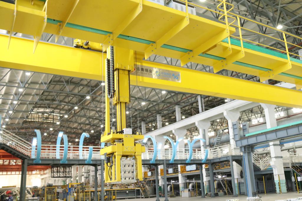 科技賦能,開辟創新發展新賽道。針對錫焙砂和錫煙塵輸送流程、輸送距離長,汽車倒運容易發生粉塵逸散降低錫的直收率等難題,聯合昆明理工大學冶能學院組成攻關團隊,采用粉體物料噴吹熔煉,實現粉體物料的全流程密閉輸送、運輸、存儲和使用,完全做到粉料不落地、不泄露。頂吹爐干粉物料高效噴吹熔煉技術取得重大突破,打破原用噴槍核心技術壁壘,干粉高效熔煉噴槍實現72小時內項目試車并軌穩定運行,新型干粉噴槍使用壽命從4個爐期提高至8個爐期超歷史峰值2倍;投入物料處理量提升20天/噸,水分減少投入21天/噸,煙塵率下降3.2%,綜合處理含錫物料煤耗下降3.5%,每年節約用煤成本280萬元。確定《錫精煉工藝裝備清潔節能加熱技術研究與運用》項目,對比分析數據100多組,探索出適合錫精煉應用的節能加熱功率、能耗、成本等指標,創新方式、優化改進,確定配置總功率230kW的節能加熱設備一次投入試生產并獲得成功,綜合電耗下降25.5%,單臺產能提升10%,小時電耗下降28.23%;引進高效智能銅棒清洗機代替人工清洗銅棒,減少勞動強度,助力綠色發展。