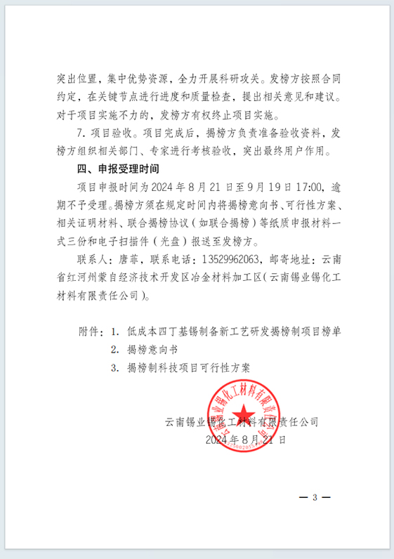 錫化工關(guān)于發(fā)布低成本四丁基錫制備新工藝研發(fā)揭榜制項(xiàng)目榜單的通知