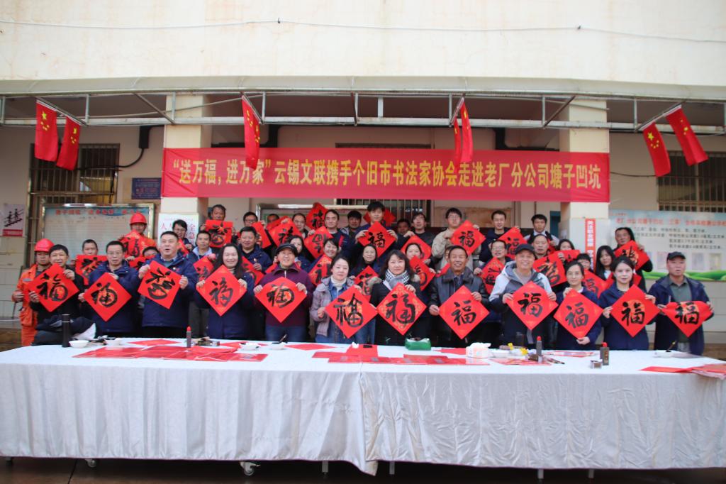 妙筆生花送祥瑞,翰墨留香迎新春。1月14日至24日,云錫文聯(lián)、個(gè)舊市書(shū)法家協(xié)會(huì)聯(lián)合各單位工會(huì)開(kāi)展“送萬(wàn)福、進(jìn)萬(wàn)家”書(shū)法公益活動(dòng),為廣大干部職工送上新春“年禮”。