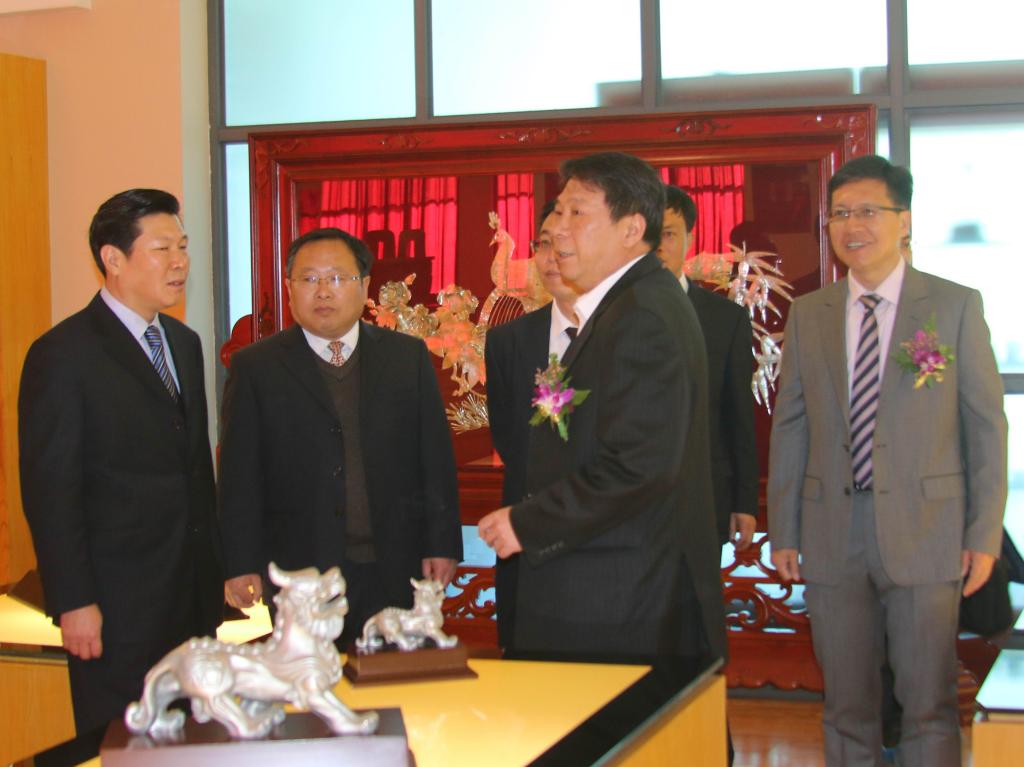 在錫工藝品展廳,領(lǐng)導(dǎo)們饒有興致地參觀錫工藝品,詳細(xì)詢問錫工藝產(chǎn)業(yè)的市場(chǎng)情況、銷售情況,對(duì)騰升公司近年來努力克服困難,求生存謀發(fā)展所做的工作給予充分肯定。