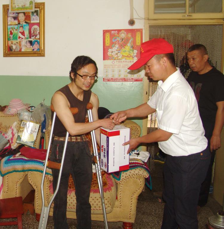 15日上午,志愿者們帶著水果、牛奶等禮品深入社區(qū)分別到袁興樹、龍學(xué)軍、張俊捷等五戶困難殘障職工及家屬家中問(wèn)候。“生活上有什么困難,需要什么幫助,一定要告訴我們,我們會(huì)盡力幫助解決,把日子過(guò)得一天比一天好!”每到一戶困難殘障職工家里,志愿者們都詳細(xì)了解其家庭生活情況,為幫扶職工做好準(zhǔn)備。在張俊捷家,手杵雙拐的張俊捷看到志愿者們來(lái)幫忙做家務(wù),對(duì)他噓寒問(wèn)暖,不由得激動(dòng)地說(shuō):“感謝年青人們來(lái)看望我,感謝社區(qū)的幫助和關(guān)心!我雖然身體殘疾,但我一定會(huì)發(fā)揮文藝專長(zhǎng),以新的方式來(lái)生活,為殘疾人事業(yè)的發(fā)展多作貢獻(xiàn)?!?/p>