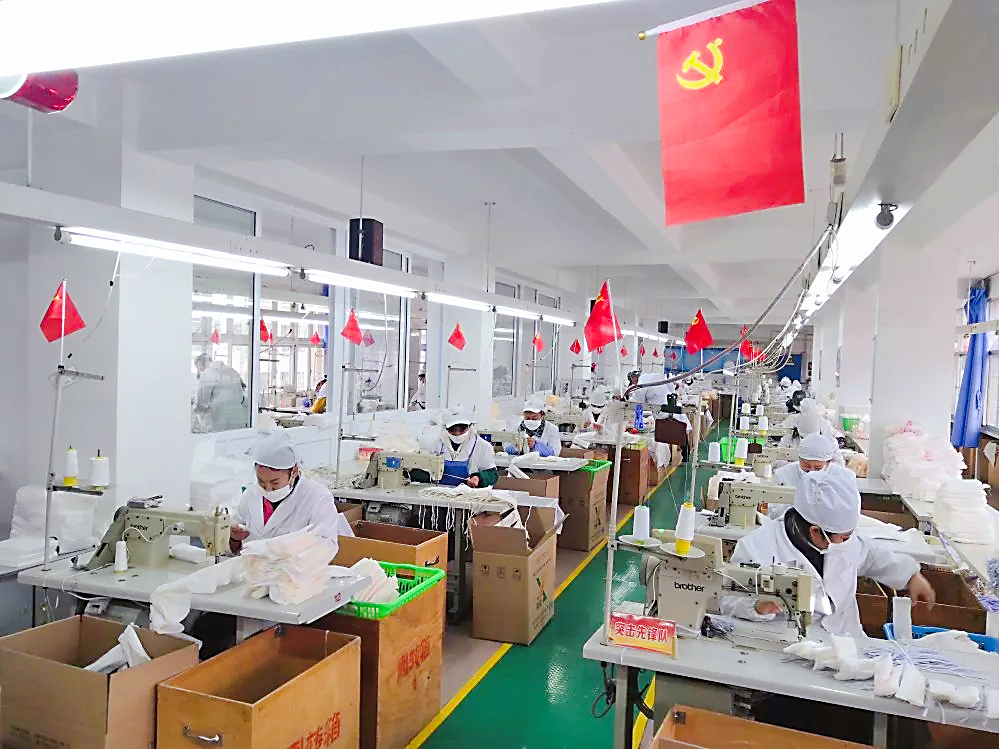 疫情期間,云錫勞動防護(hù)用品公司組織黨員和職工生產(chǎn)口罩,為云南省一線抗疫提供了重要防疫物資保障。(云錫集團(tuán)供圖)