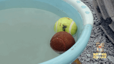 通過機(jī)械手臂,王仁沖可以從水盆里取出兩個(gè)網(wǎng)球,然后精準(zhǔn)放置到兩米之外的鋼管里。