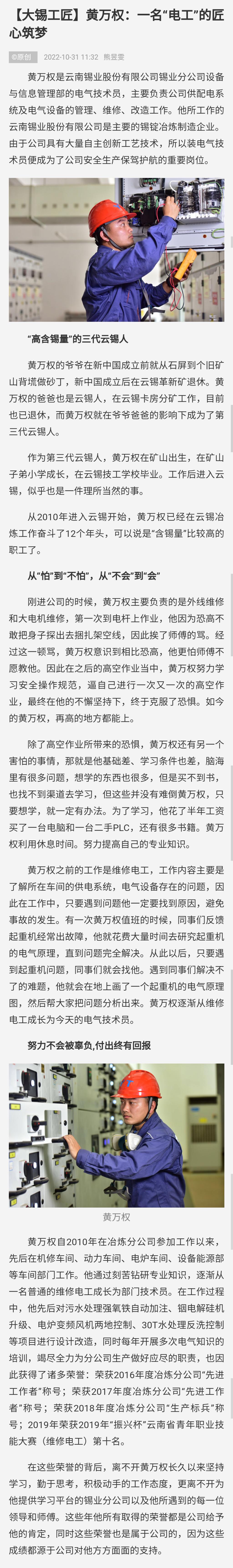 文旅頭條:【大錫工匠】黃萬權:一名“電工”的匠心筑夢