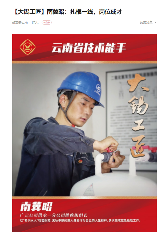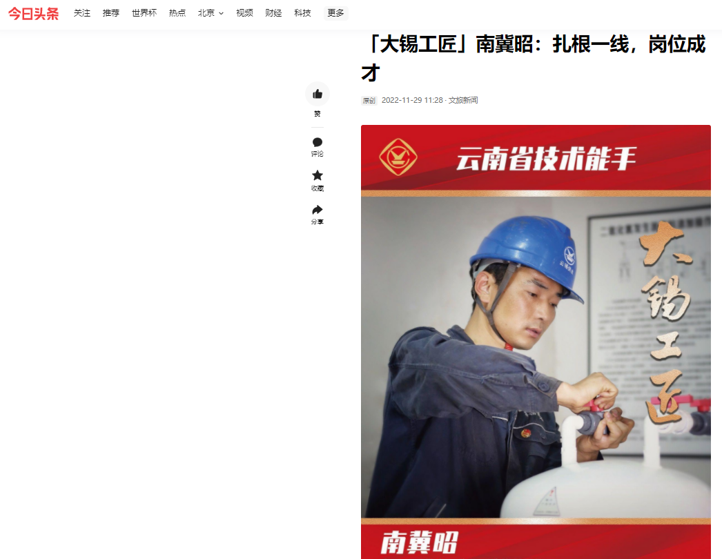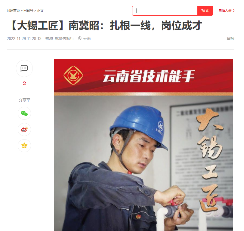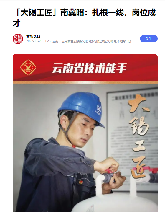 今日頭條、網易、一點資訊、百度、文旅頭條:【大錫工匠】南冀昭:扎根一線,崗位成才