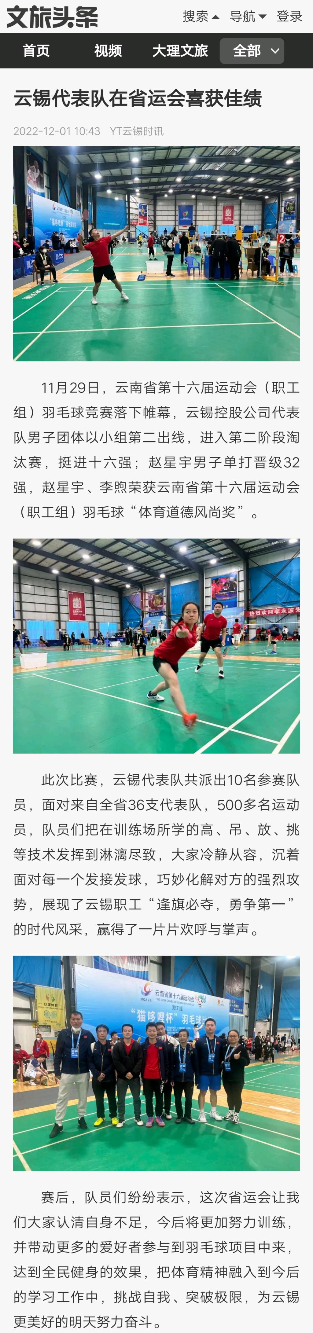 文旅頭條:云錫代表隊(duì)在省運(yùn)會(huì)喜獲佳績(jī)