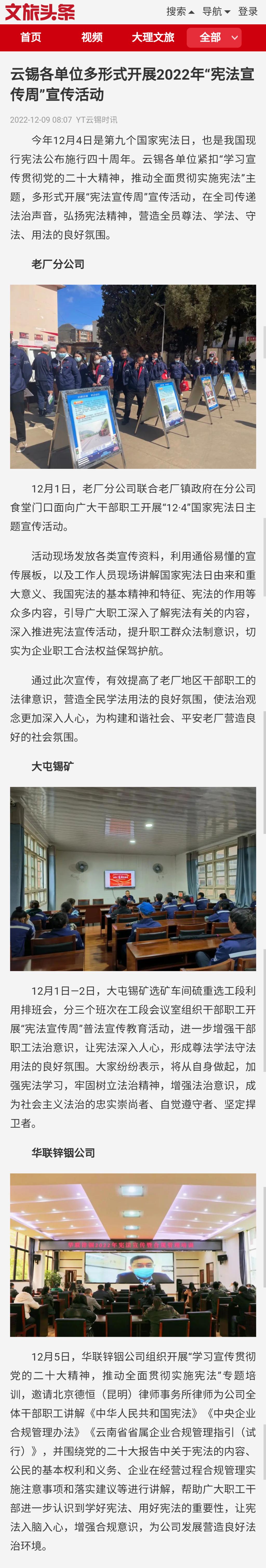 文旅頭條:云錫各單位多形式開展2022年“憲法宣傳周”宣傳活動