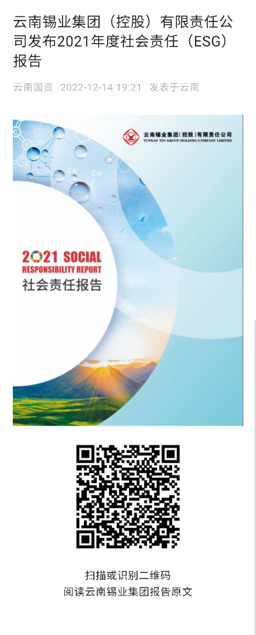 云南國資:云南錫業集團(控股)有限責任公司發布2021年度社會責任(ESG)報告
