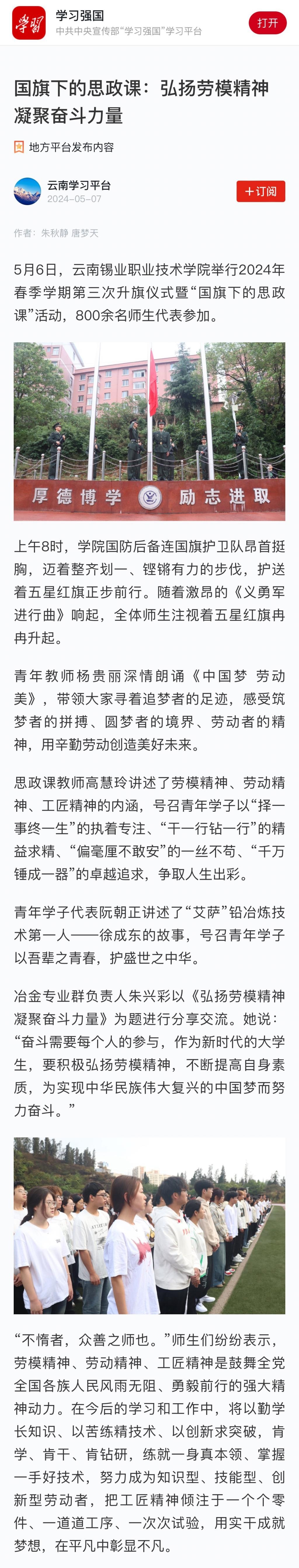 學習強國:【國旗下的思政課】弘揚勞模精神 凝聚奮斗力量