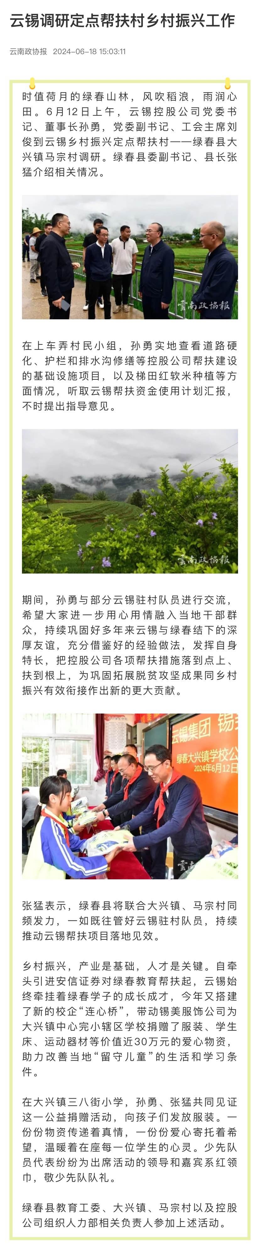 云南政協報:云錫調研定點幫扶村鄉村振興工作