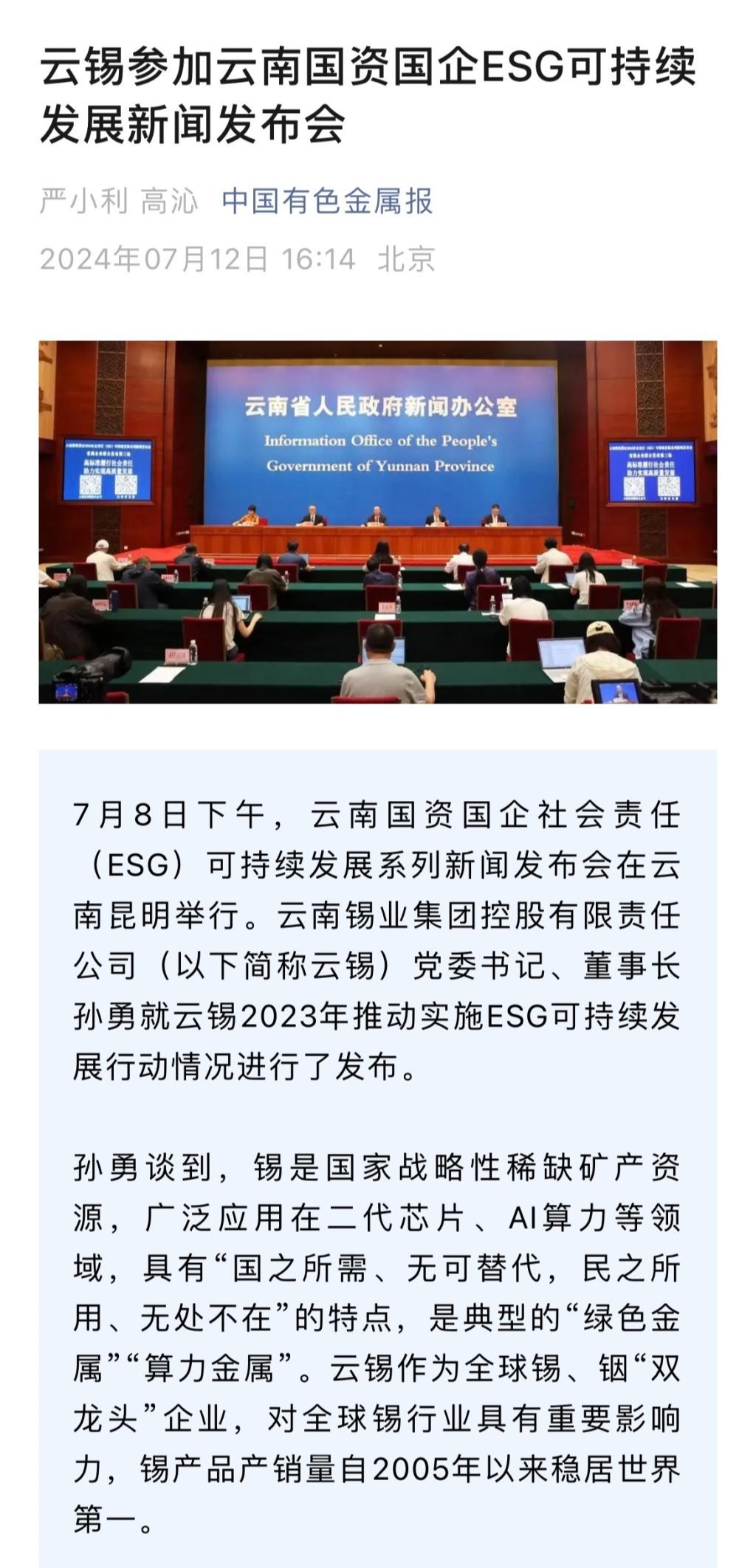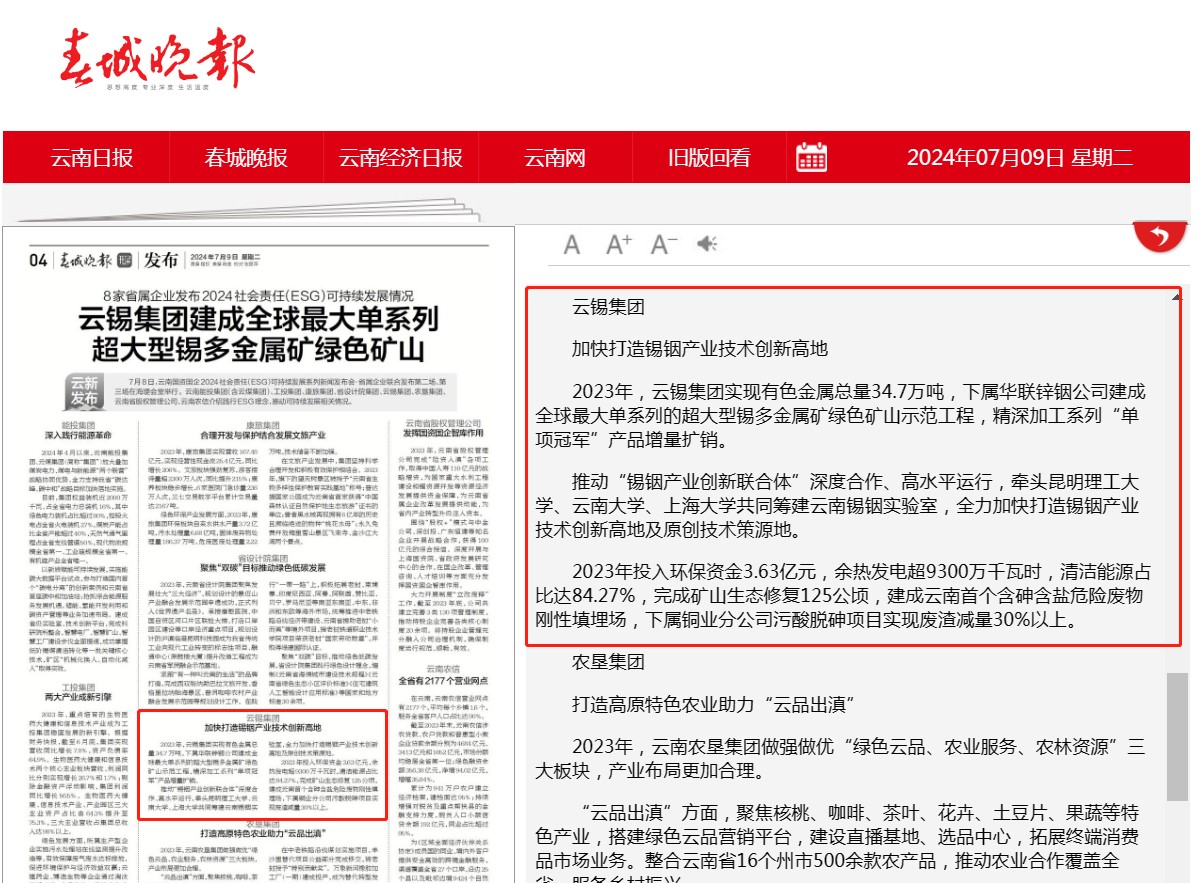 來源:人民日報(bào)、新華財(cái)經(jīng)、中國環(huán)境監(jiān)察、云南新聞聯(lián)播、云南發(fā)布、云南網(wǎng)、云南經(jīng)濟(jì)日報(bào)、云南政協(xié)報(bào)、中國有色金屬報(bào)、有色新聞、春城晚報(bào)、都市時(shí)報(bào)