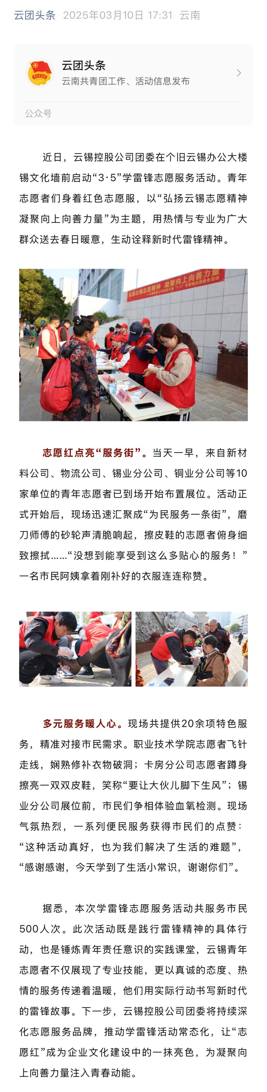 云團頭條:云錫控股公司團委開展“3·5”學雷鋒志愿服務活動