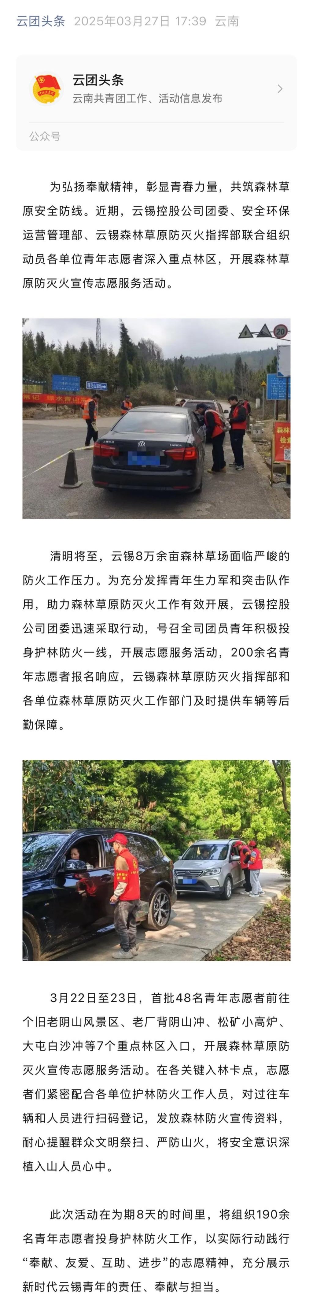 云團頭條:云錫青年積極投身森林草原防滅火宣傳志愿服務活動
