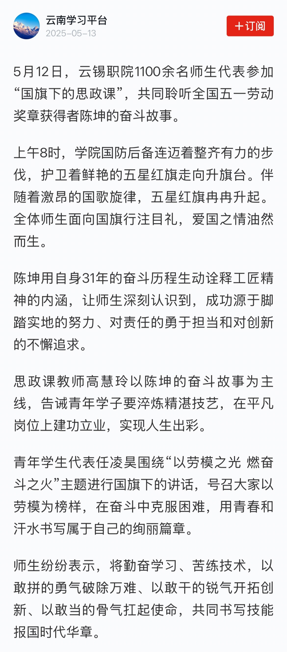 學(xué)習(xí)強(qiáng)國:云錫職院以勞模之光 燃奮斗之火