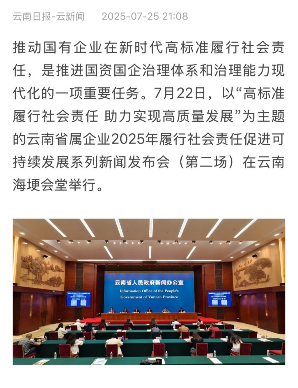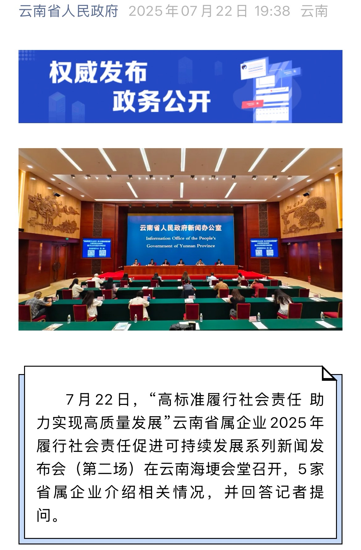 來源:央廣網、央視影音、新華網、新華時訊、中國日報網、中國新聞網、中國網云南新聞聯播、云南衛視晚間新聞、云南發布、云南日報、云南日報-云新聞、云南網、七彩云端、云南省人民政府、云嶺先鋒網、云南國資、云南政協報、有色金屬報、有色新聞、騰訊新聞、今日頭條、搜狐、網易、新浪微博、新浪財經、都市時報、國泰君安、昆明日報、春城晚報、昆明信息港、開屏新聞