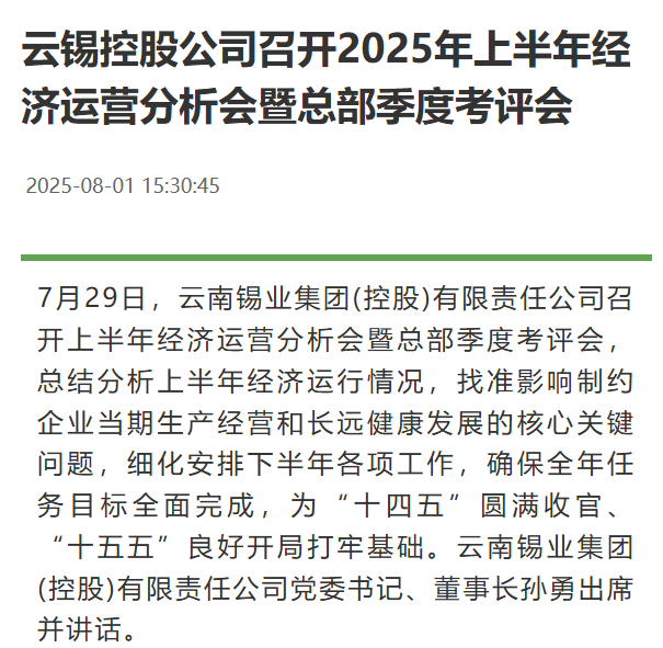 來源:中國有色金屬報、中國有色金屬工業網、云南政協報
