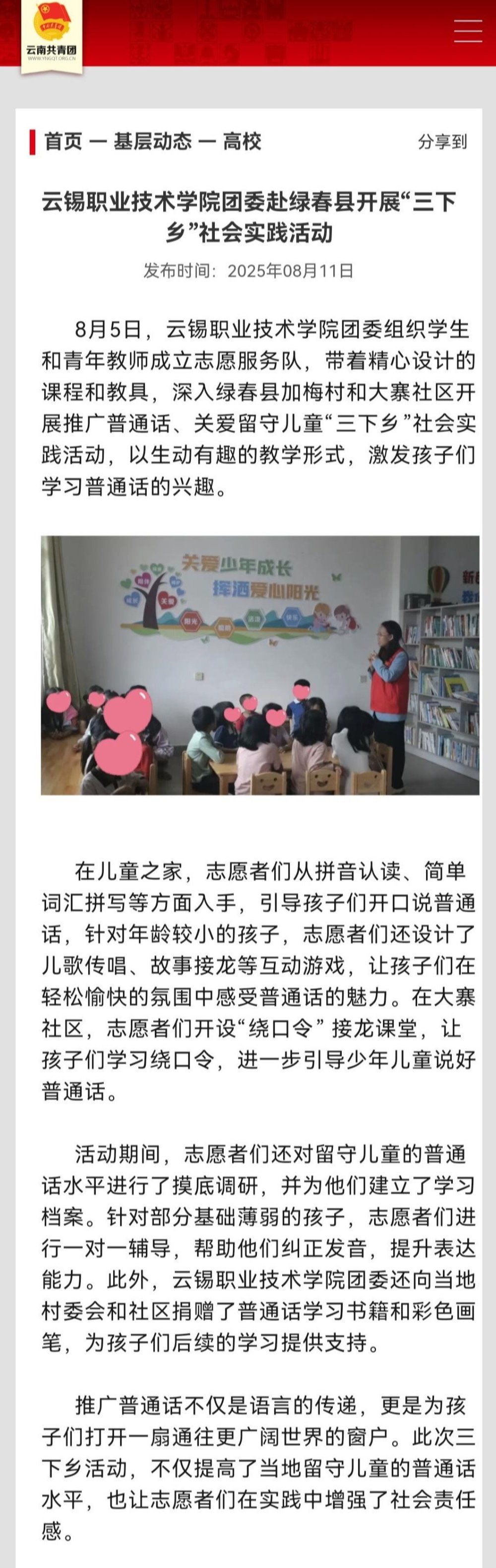 云南共青團:云錫職業技術學院團委赴綠春縣開展“三下鄉”社會實踐活動