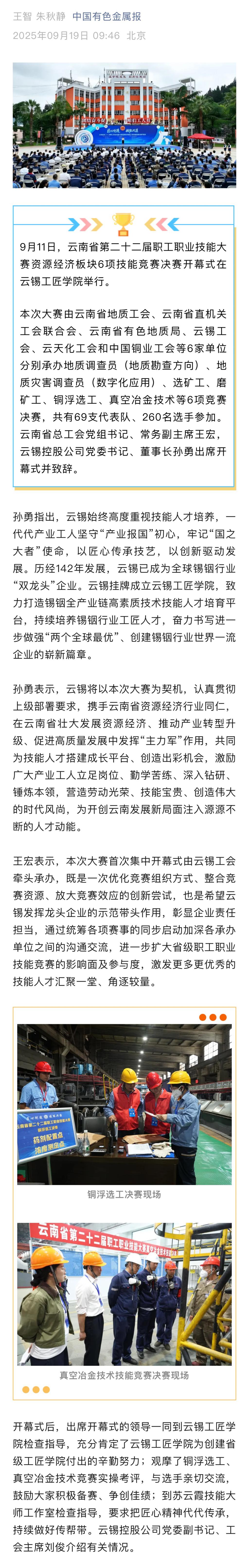 鏈接:(云嶺職工)、(中國有色金屬報)