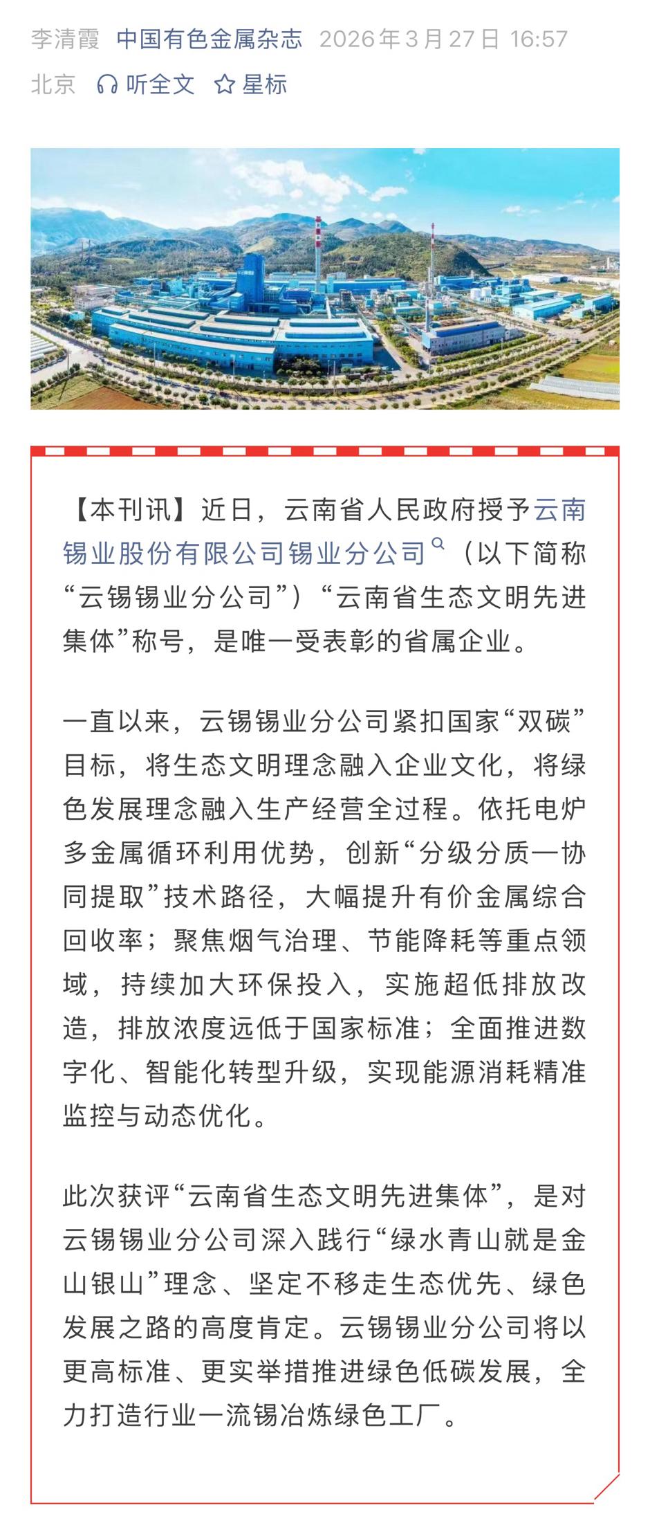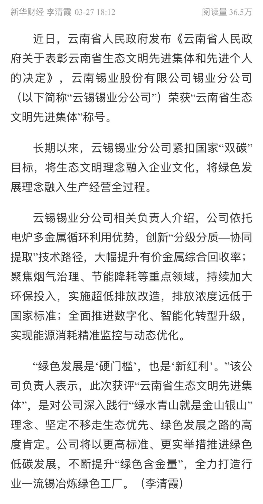 鏈接:(新華財(cái)經(jīng))、(中國(guó)有色金屬雜志)、(云南政協(xié)報(bào))、(云南國(guó)資)、(中國(guó)有色網(wǎng))