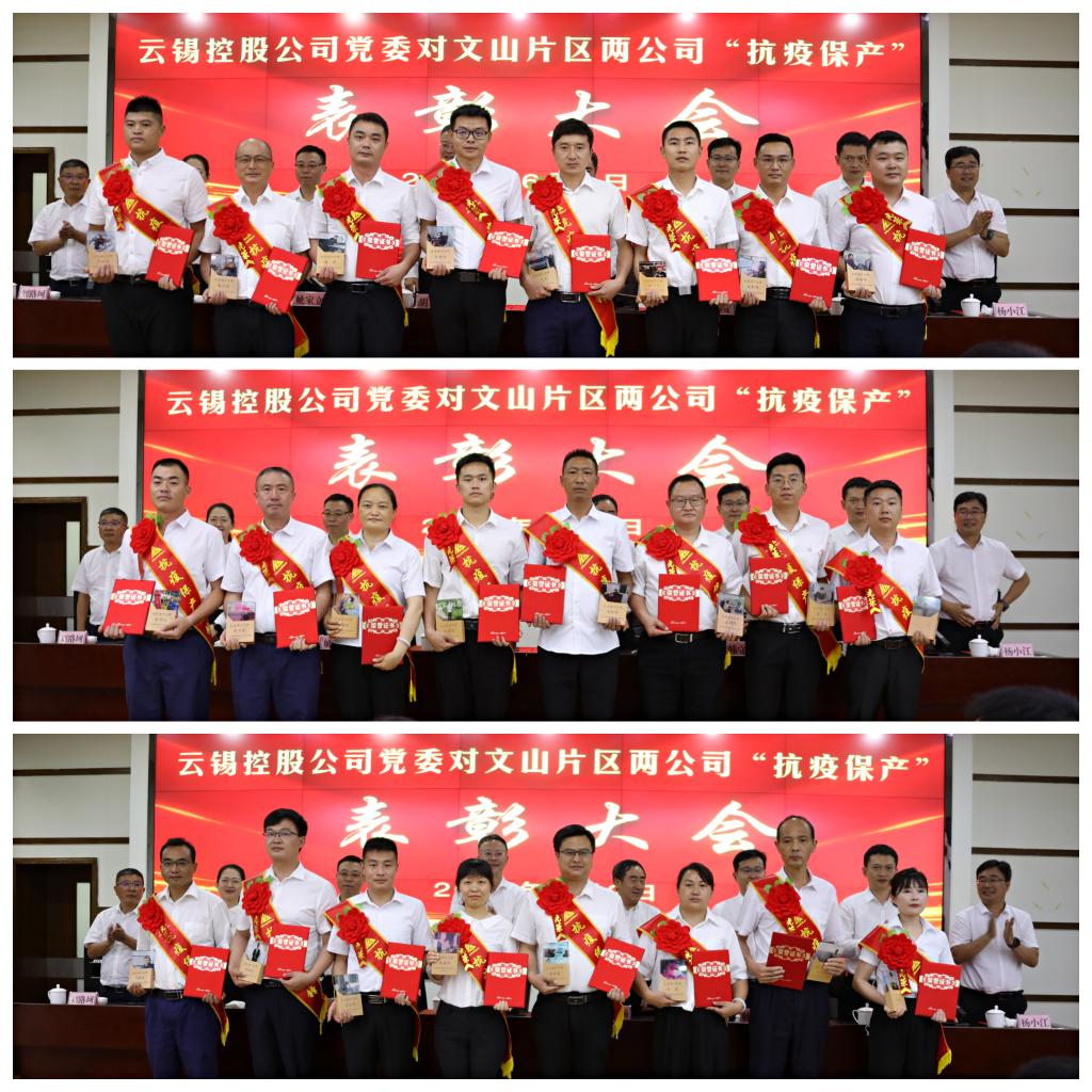 程睿涵宣讀云錫控股公司黨委表彰決定,授予華聯鋅銦“抗擊疫情先進集體”榮譽稱號,授予文山鋅銦“抗疫情保生產先進集體”榮譽稱號。