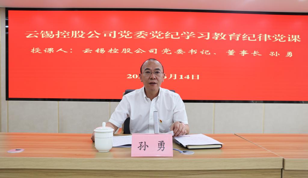 6月14日下午,控股公司黨委在昆明總部14樓會議室開展黨紀學習教育紀律黨課。控股公司黨委書記、董事長孫勇作題為《知紀于心 立紀于身 化紀于行》的黨紀學習教育專題黨課。