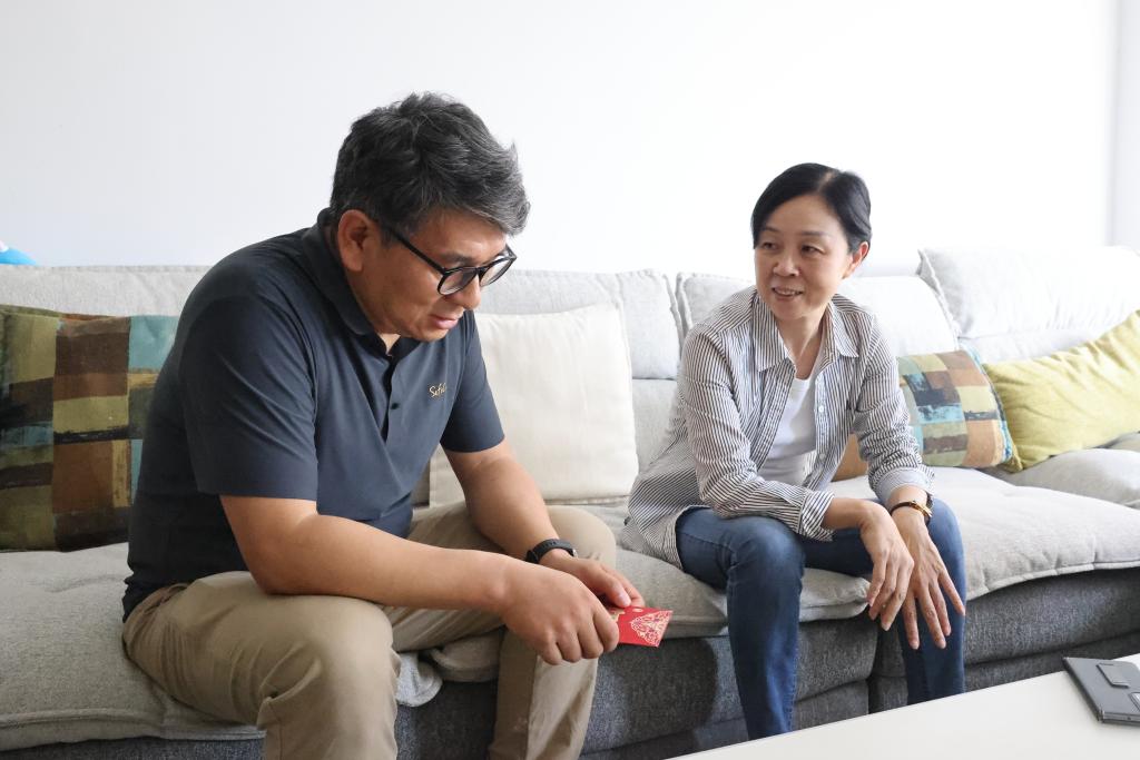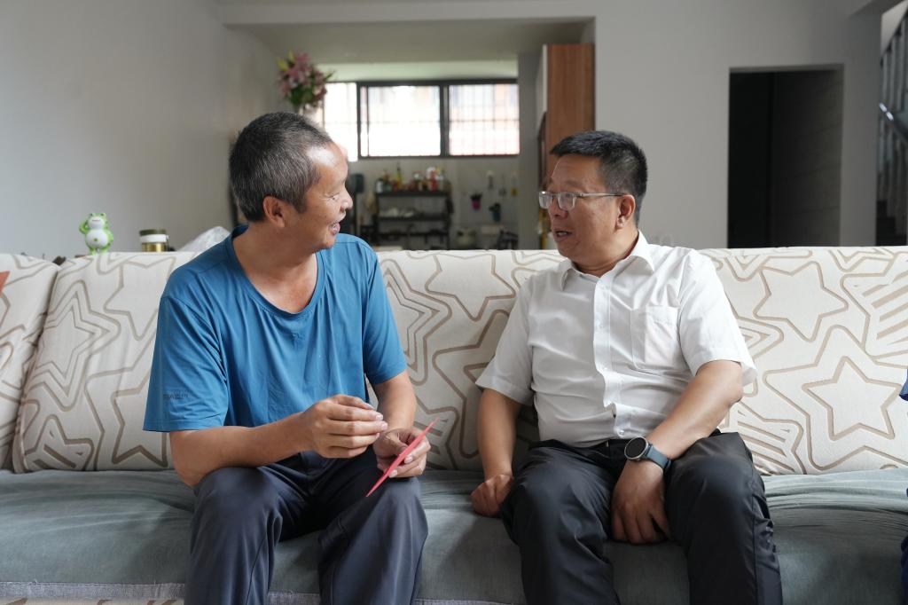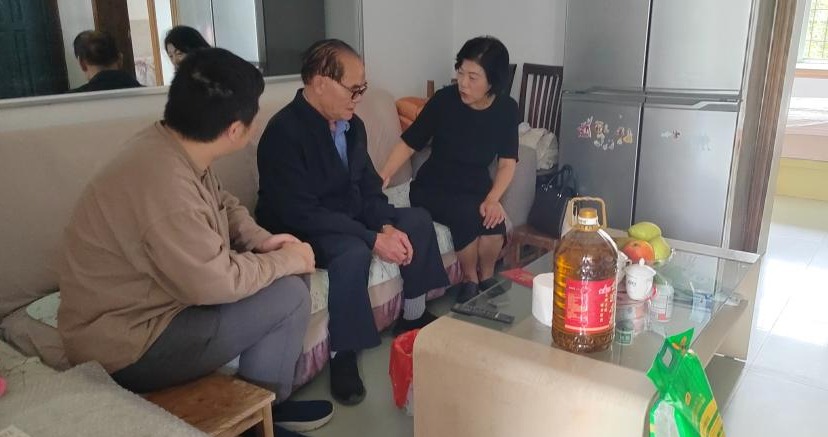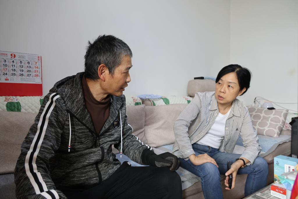 控股公司黨委委員、財務總監胥翠芬走訪慰問退休困難人員黃喬有(程雪銳/攝)