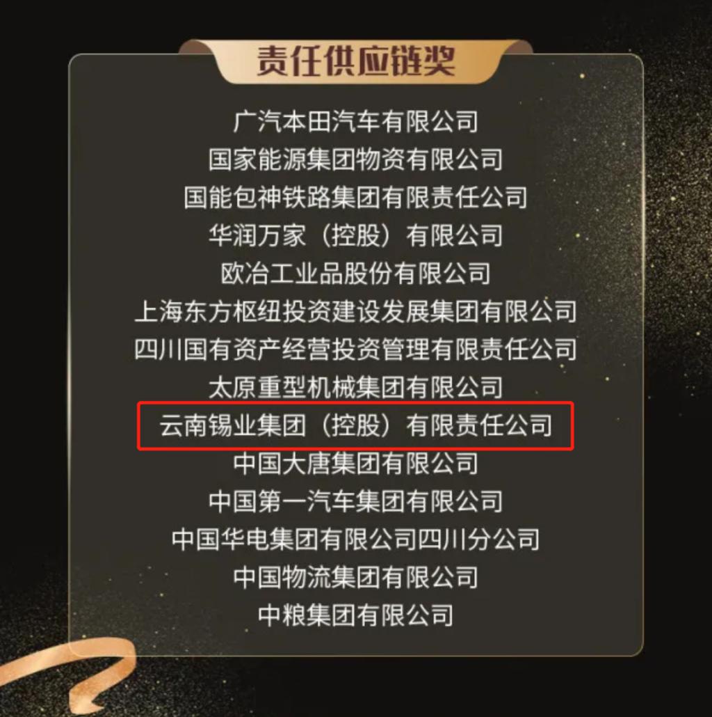 11月19日至20日,由中國企業改革與發展研究會、責任云研究院主辦的“ESG中國·第七屆北京責任展”、2024年責任之夜暨“責任鯨牛獎”頒獎典禮、2024中國企業社會責任報告峰會等系列活動在北京舉行。活動發布了2024年“責任鯨牛獎”榜單,云錫控股公司榮獲“責任供應鏈獎”,《云南錫業集團(控股)有限責任公司2023年社會責任(ESG)報告》在會上發布。