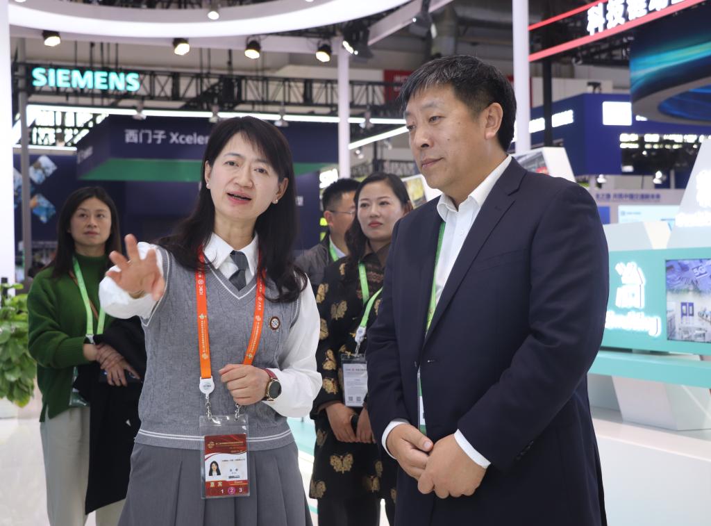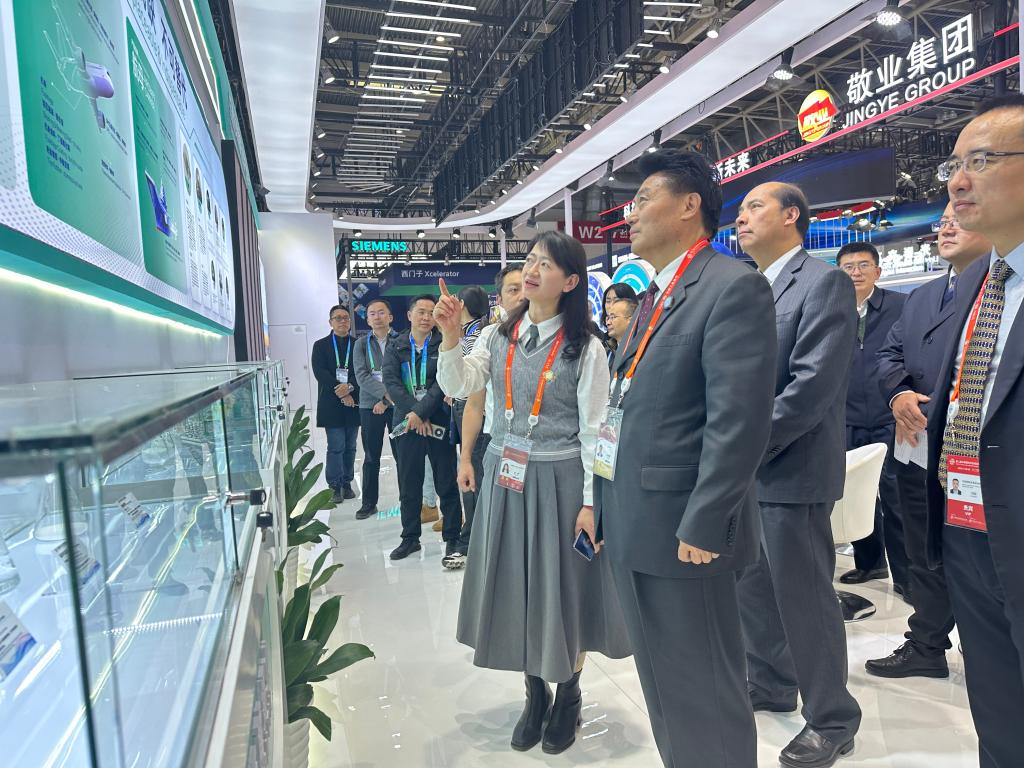 吳君向中國(guó)銅業(yè)有限公司黨委常委、副總經(jīng)理、總工程師胥福順介紹錫銦產(chǎn)品應(yīng)用場(chǎng)景